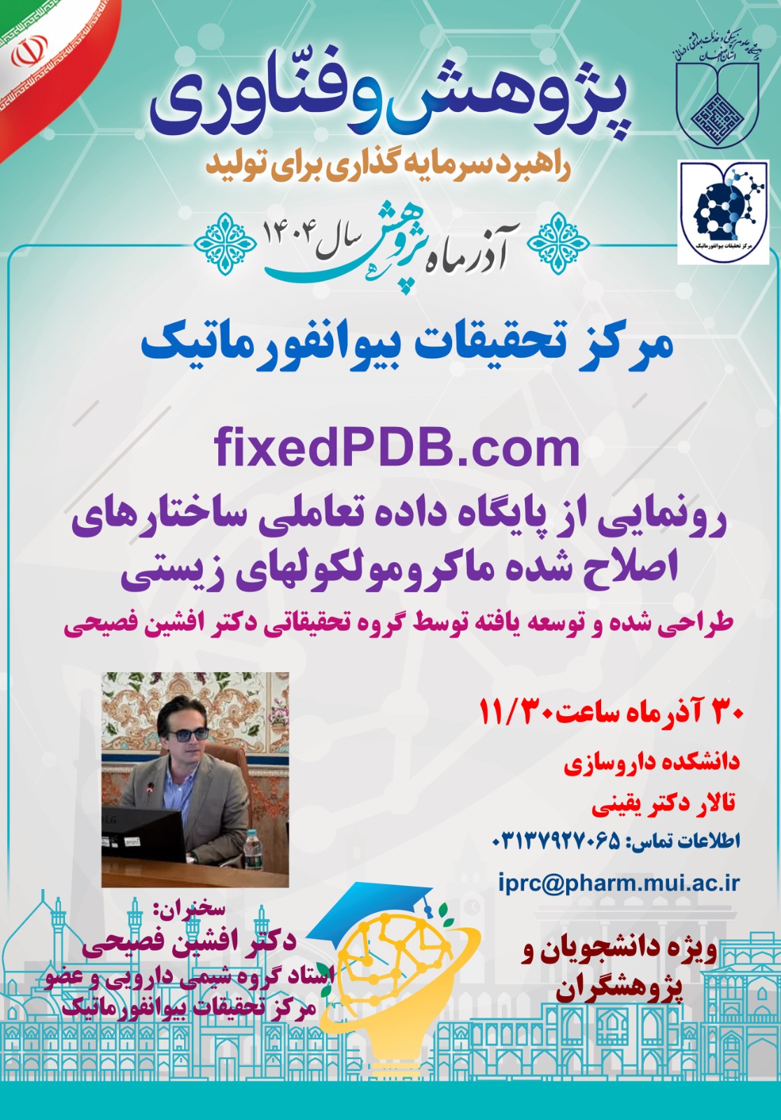 زمان: 30 آذر ساعت 11/30- دانشکده داروسازی- تالار دکتر یقینی