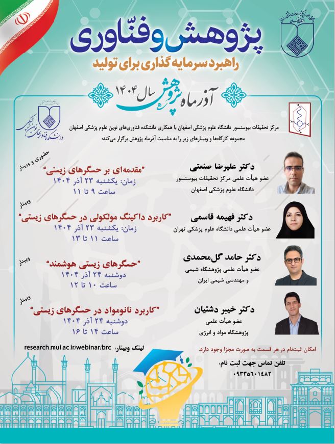 برنامه های مرکز تحقیقات بیوسنسور ویژه آذرماه پژوهش مرکز تحقیقات بیوسنسور در آذرماه پژوهش با تمرکز بر تکنولوژی های جدید برای تشخیص در محل بیماری ها