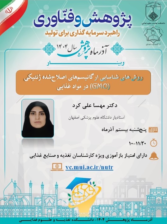 این وبینار فرصتی است برای آشنایی کاربردی با روشهای نوین شناسایی ارگانیسمهای اصلاحشده ژنتیکی در مواد غذایی.
