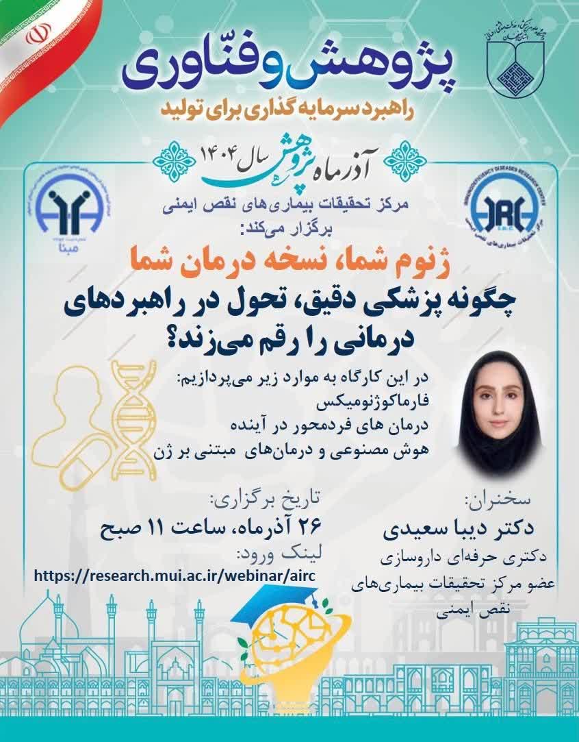وبینار آموزشی ژنوم شما،نسخه درمان شما:چگونه پزشکی دقیق ،تحول در راهبردهای درمانی را رقم میزند؟