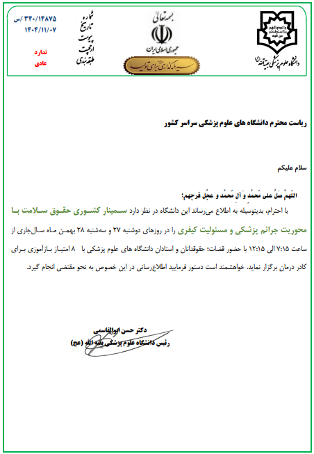 سمینار کشوری حقوق سلامت با محوریت جرائم پزشکی و مسئولیت کیفری
