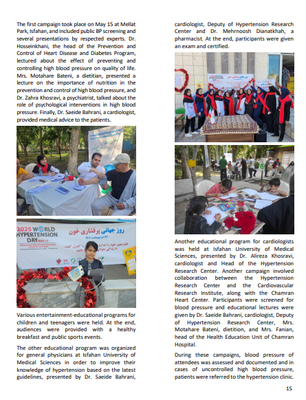 پس از برگزاری موفقیتآمیز روز جهانی پرفشاری خون در تاریخ ۱۷ می 2025 (مصادف با ۲۷ اردیبهشت 1404)، خبرنامه ماه سپتامبر لیگ جهانی فشارخون (WHL)، گزارشی جامع از نتایج و فعالیتهای انجام شده در این روز توسط مرکز تحقیقات پرفشاری خون و مرکز تحقیقات قلب و عروق پژوهشکده قلب و عروق اصفهان را منتشر کرد.