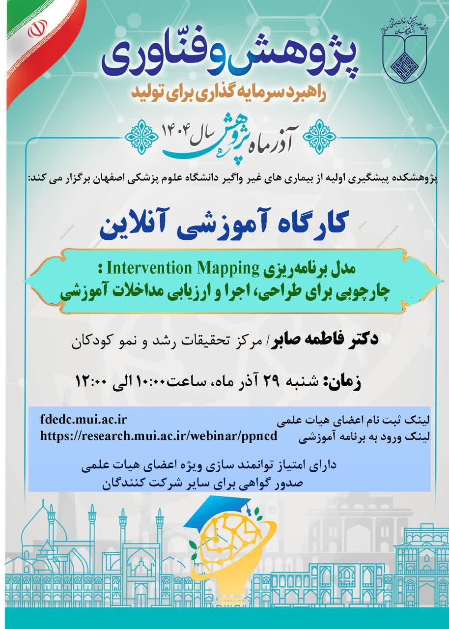 وبینار "مدل برنامهریزی Intervention Mapping : چارچوبی برای طراحی، اجرا و ارزیابی مداخلات آموزشی "