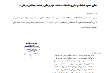 بدینوسیله از کلیه دانشجویان، کارشناسان، پزشکان و اساتید دانشگاه دعوت میگردد در این برنامه مهارتآموزی تخصصی شرکت فرمایند.