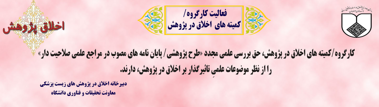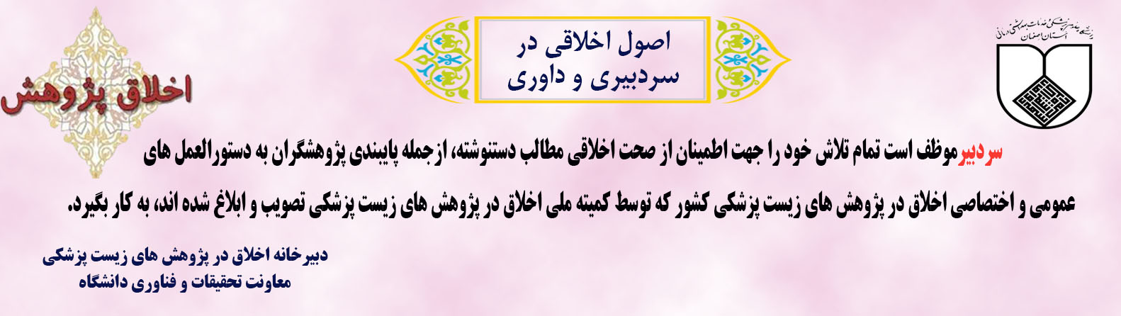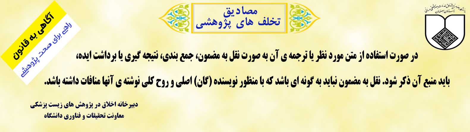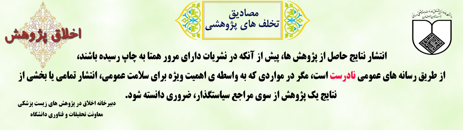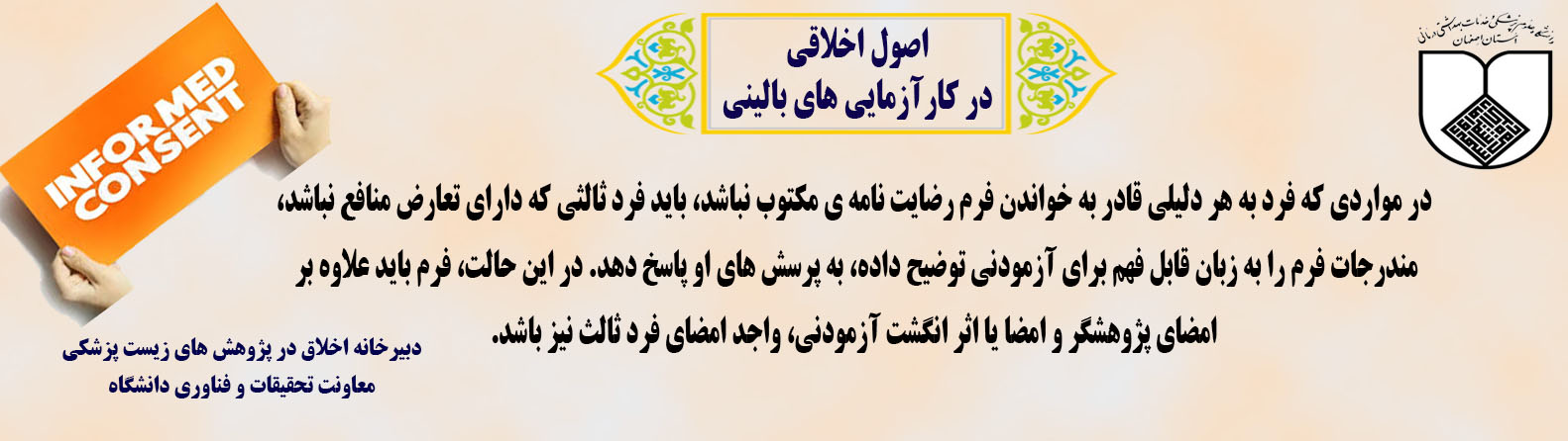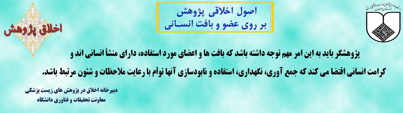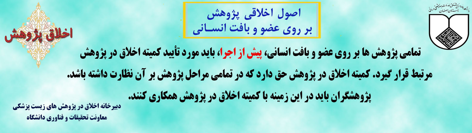معرفی کمیته اخلاق . . . . . . . کمیته اخلاق دانشگاه هدف از انجام هر پژوهش به ویژه در پژوهشهای مرتبط با نظام سلامت، ارتقا سلامت و رفاه جامعه است، بنابراین انتظار میرود که پژوهشی انجام شود که: سودمند باشد (Beneficence) زیان رسان نباشد (Non-Maleficence) با رضایت آزمودنی انجام شود (Autonomy) آزمودنیها را از میان جمعیت هدف، منصفانه انتخاب نماید (Justice) بسته پیام های کوتاه اخلاقی پژوهشیار (سامانه مدیریت اطلاعات پژوهشی) اطلاعات کارگاه های آموزشی --- سامانه کمیته ملی اخلاق در پژوهش های زیست پزشکی
