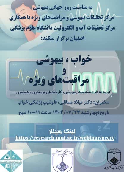 به مناسبت روز جهانی بیهوشی، مرکز تحقیقات بیهوشی و مراقبتهای ویژه با همکاری مرکز تحقیقات آب و الکترولیت دانشگاه علوم پزشکی اصفهان برگزار میکند: وبینار آموزشی"خواب، بیهوشی و مراقبتهای ویژه"