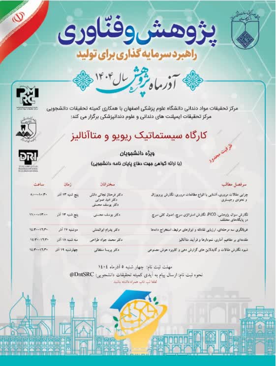 برگزاری "کارگاه سیستماتیک ریویو و متاآنالیز" همزمان با آذرماه پژوهش