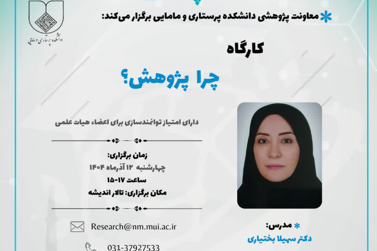 💢معاونت پژوهشی دانشکده پرستاری و مامایی برگزار میکند: