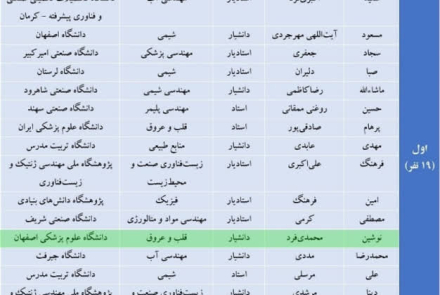 حضور دکتر نوشین محمدیفرد در گروه نخست سرآمدان علمی کشور با بالاترین کیفیت آثار پژوهشی