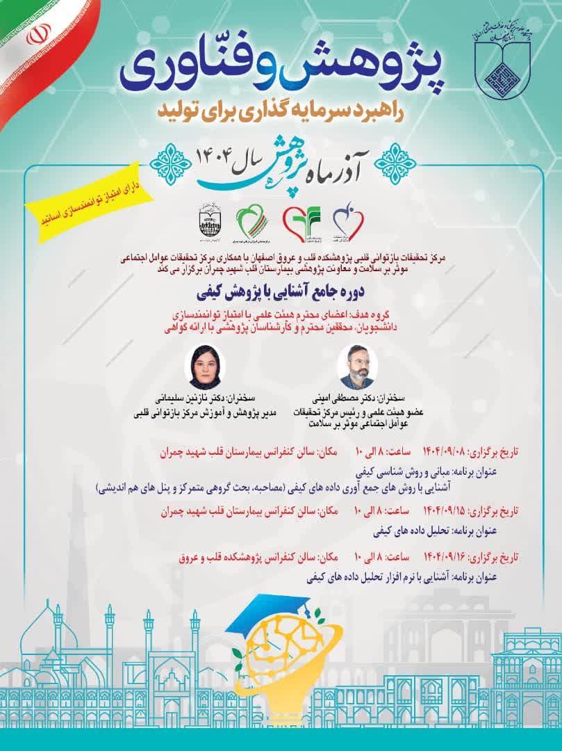 مرکز تحقیقات بازتوانی قلبی با همکاری مرکز تحقیقات عوامل اجتماعی موثر بر سلامت و معاونت پژوهشی بیمارستان چمران برگزار میکند:
